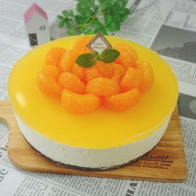 レアチーズケーキの上にみかんのゼリーやババロアをのせて、さらにトッピングにも活用することでみかんの大量消費ができます。
