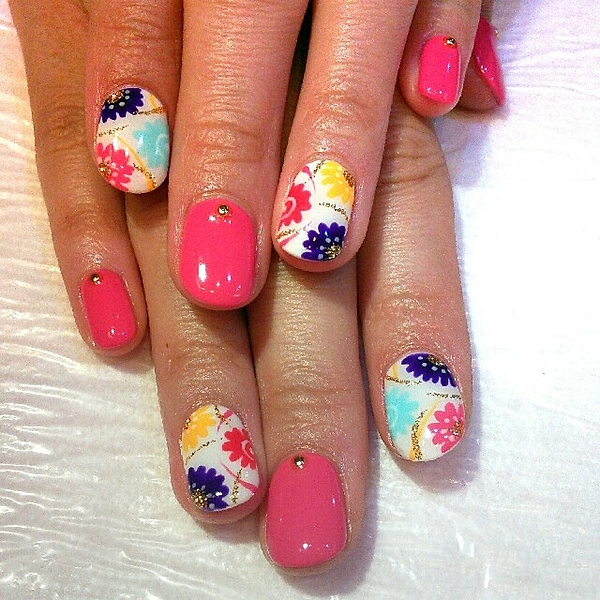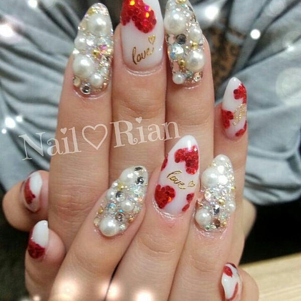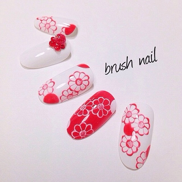赤とピンクのラブリーな配色のポリッシュ。愛される指先に大変身しちゃいます。