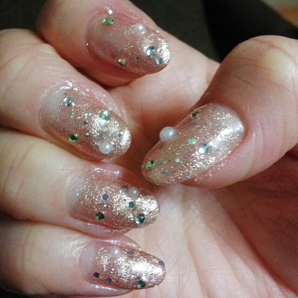 透け感のあるベースにラメを織り交ぜたポリッシュ。一塗りでアートまで出来ちゃいます。