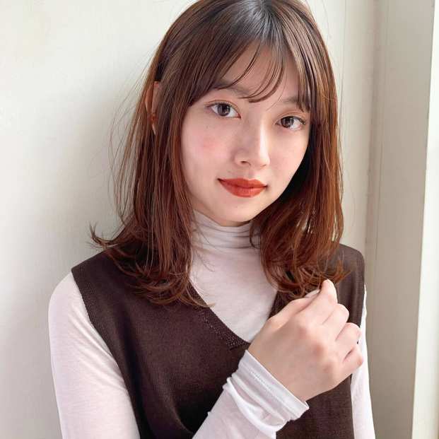ほつれ感のあるスタイリングとブラウンベージュの相乗効果で重見えシルエットのスタイルも軽やかな印象に。ラフに仕上げて親しみやすく、まとめ髪にして大人可愛くなど、いろいろな表情を愉しみましょう。