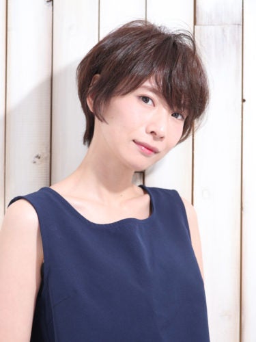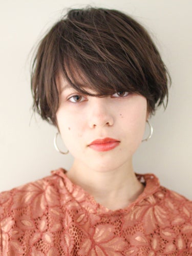 クールになりがちなショートヘアも、モカブラウンで女性らしい雰囲気になりますよ。