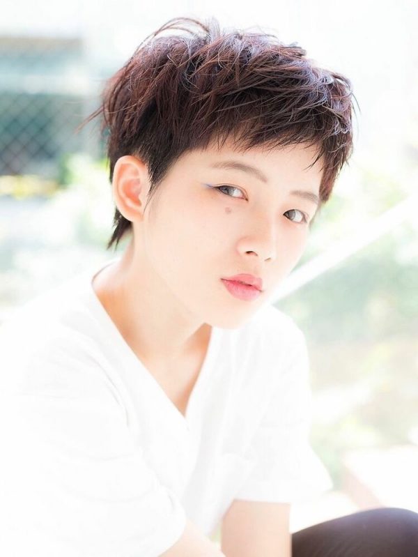 人気かつトレンドのかきあげ前髪は、ショートとの相性ももちろん抜群です。