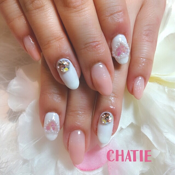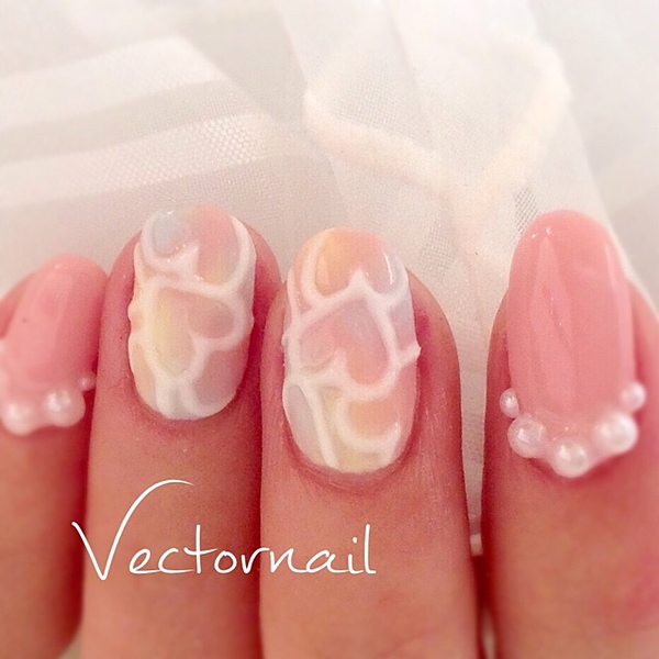 指先にをまとわせて爽やかガール。白レースネイルデザイン...