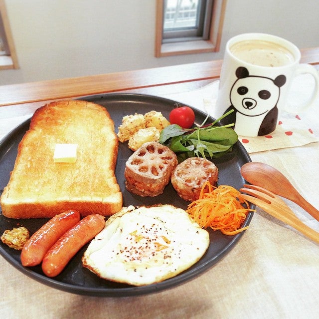 一緒にソーセージやスクランブルエッグなどのおかずをのせて理想の朝ごはんに。