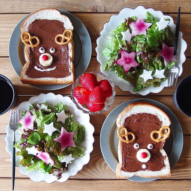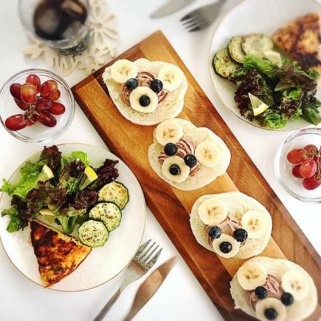 人気のくまさんパンを作っておしゃれな朝ごはんにしたアイデアです。