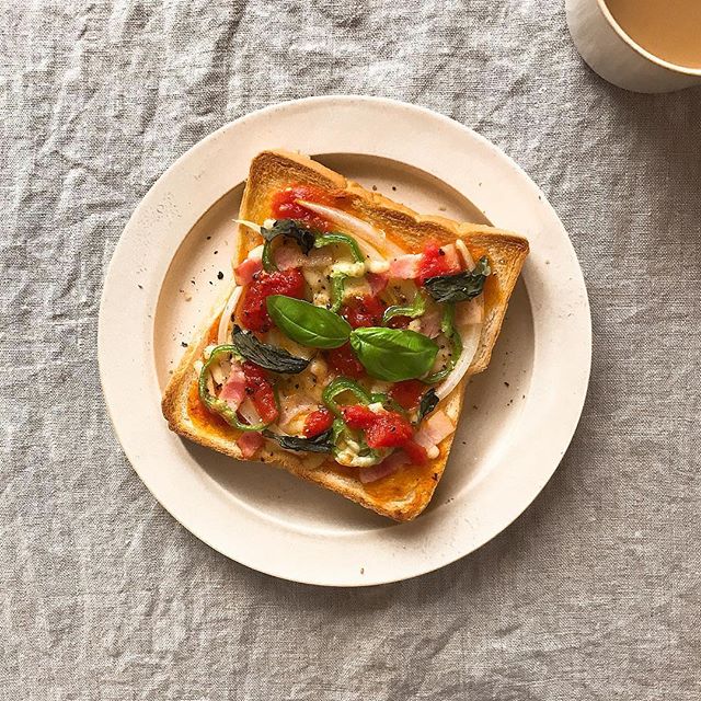 食パンにピーマンやトマトソース、チーズなどをトッピングして焼いたおすすめの朝ごはんはいかがでしょうか。