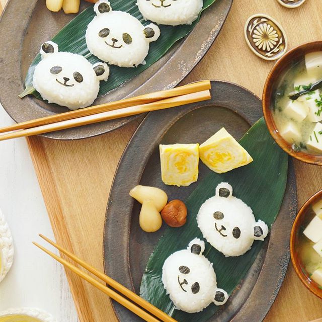 和風の朝ごはん!人気のパンダおにぎり