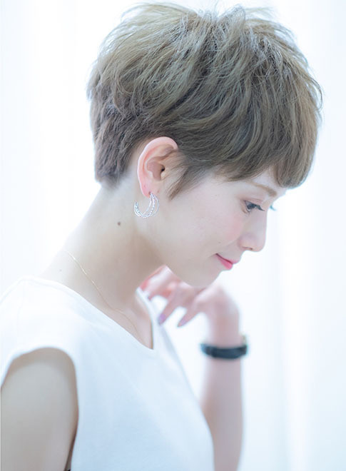 清潔感のあるツヤのあるショートヘアは、好感度も高いのではじめての出会いが増える春の季節にぜひ挑戦したいスタイル。年齢が出やすい後ろ髪をトリートメントなどでしっかりケアするのが若見えの秘訣です。