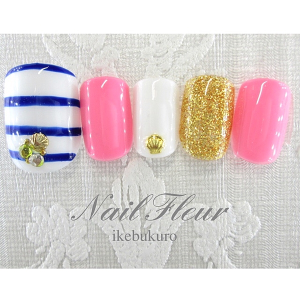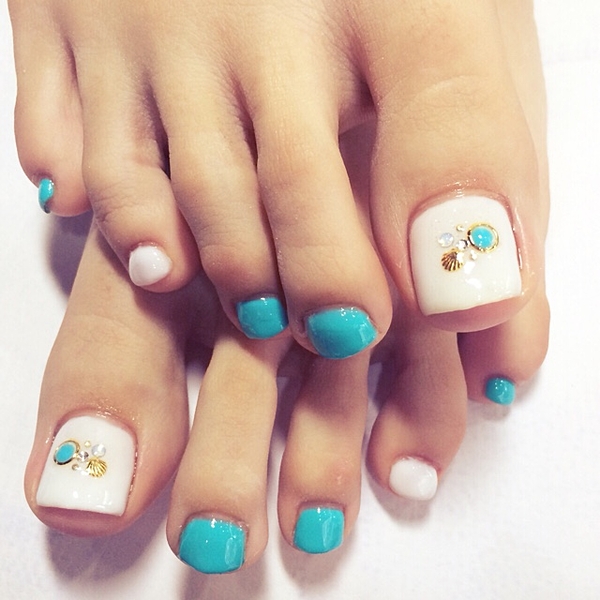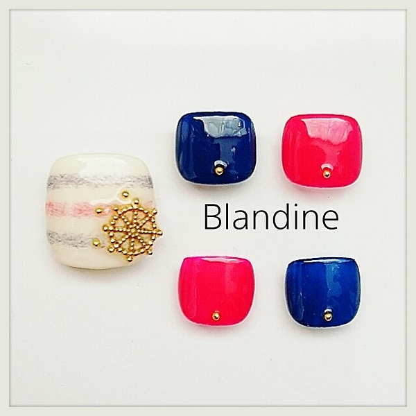 マリンボーダーや夏のフットネイルに人気のブルー。