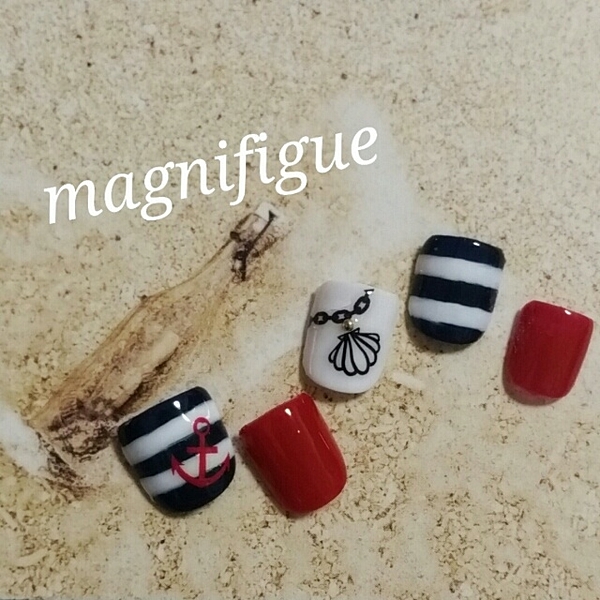 単色で塗ったり、マリンデザインの一部に使ったり。赤は1本あると便利なカラー。女性らしい足元を演出できます。