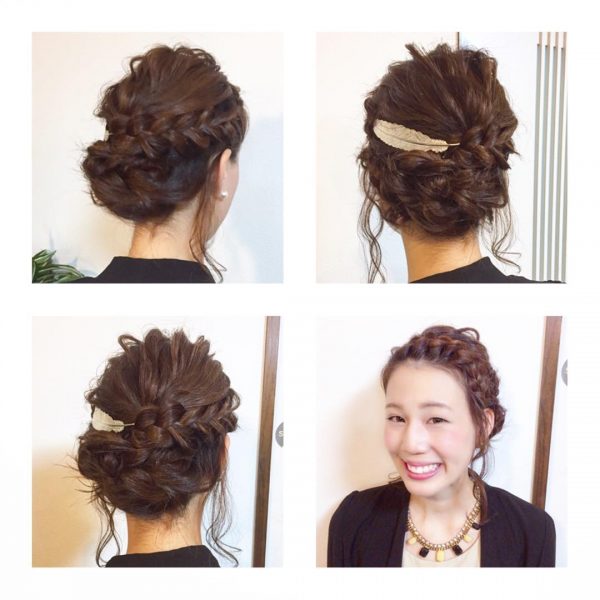最後にまとめ髪をくずしてこなれ感を出すのがポイントです。