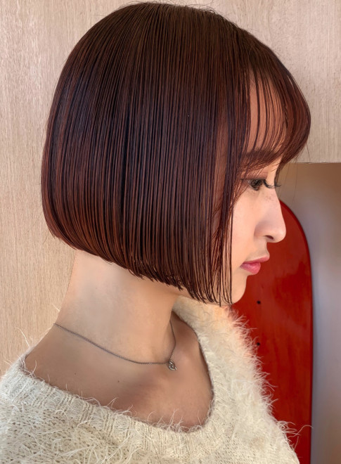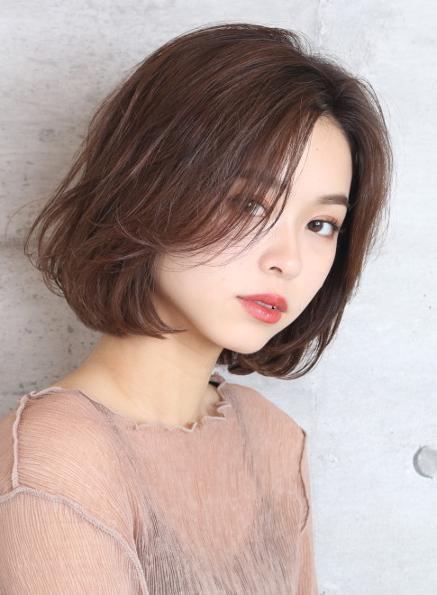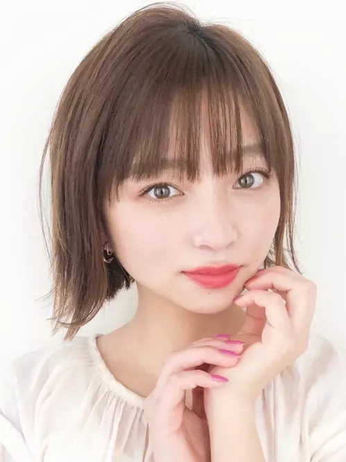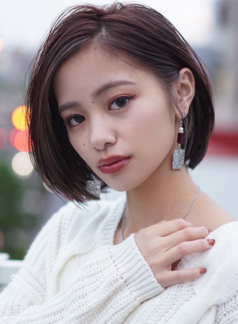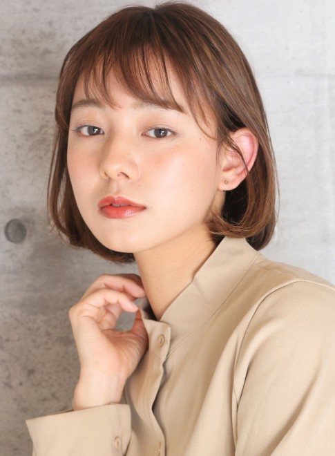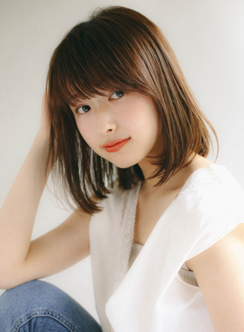 甘さとナチュラル感のバランスが絶妙な、ストレートベースのボブです。表面にレイヤーを入れ、ふんわり感を出すのがポイント。カラーはブラウン系です。