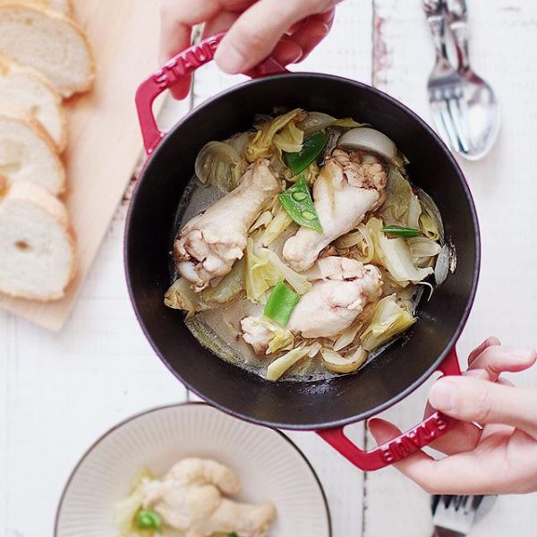 白ワインで鶏肉をじっくりと煮込んでいるため、鶏肉の旨味を引き出してくれます。玉ねぎやカブも一緒に煮込んでヘルシーなメインにしてみてください。
