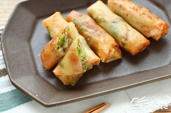 春巻きにキャベツを大量に入れることでいつもと違ったテイストが味わえます。春巻きは夕飯のメニューのメインになるので、ぜひ作ってみてくださいね。