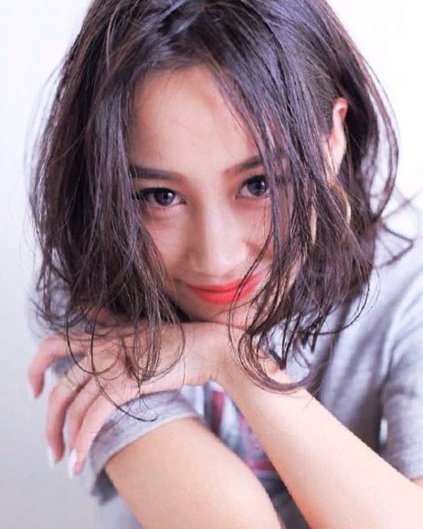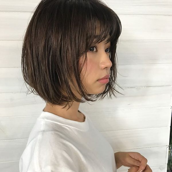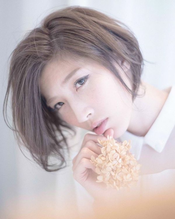 前下がりボブとの相性も抜群で、ボリューミーなかきあげ前髪がとても良く映えます。