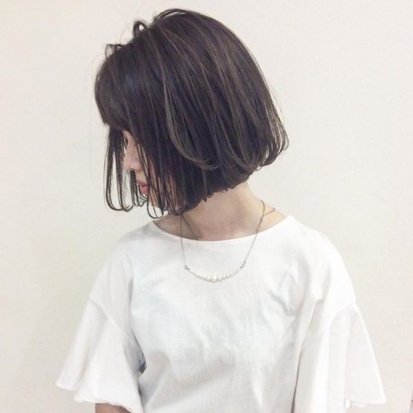 ロングからボブにする場合や、前下がりボブ初心者さんにおすすめなのが角度浅めの前下がりボブ。
