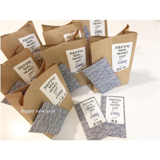こちらは紙袋を使った、お正月のプチギフト用紙袋アレンジです。