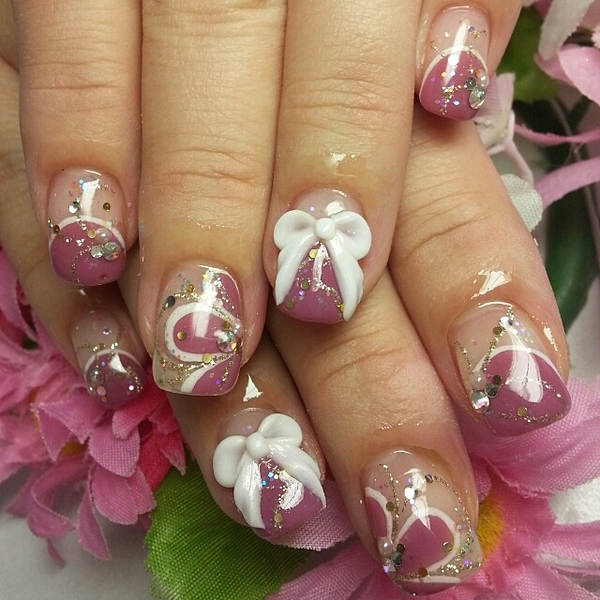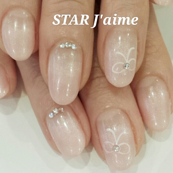 リボンがとってもキュートなフレンチネイル。