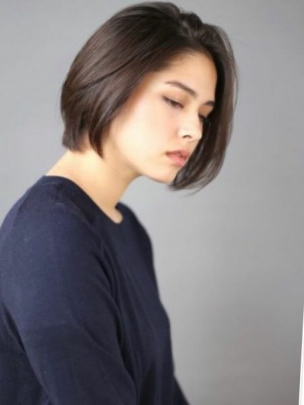 ツヤのある黒髪は、男女ともに好感度が高いですよ。前髪なしだと顔回りは明るく見えるので、黒髪ボブでも暗く見えません。