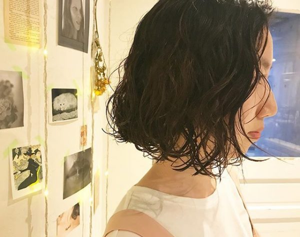 黒髪ボブでもパーマの力を借りれば、簡単に華やかで軽い印象になります。オイルやワックスを揉み込んでツヤ感を出すのも忘れずに。