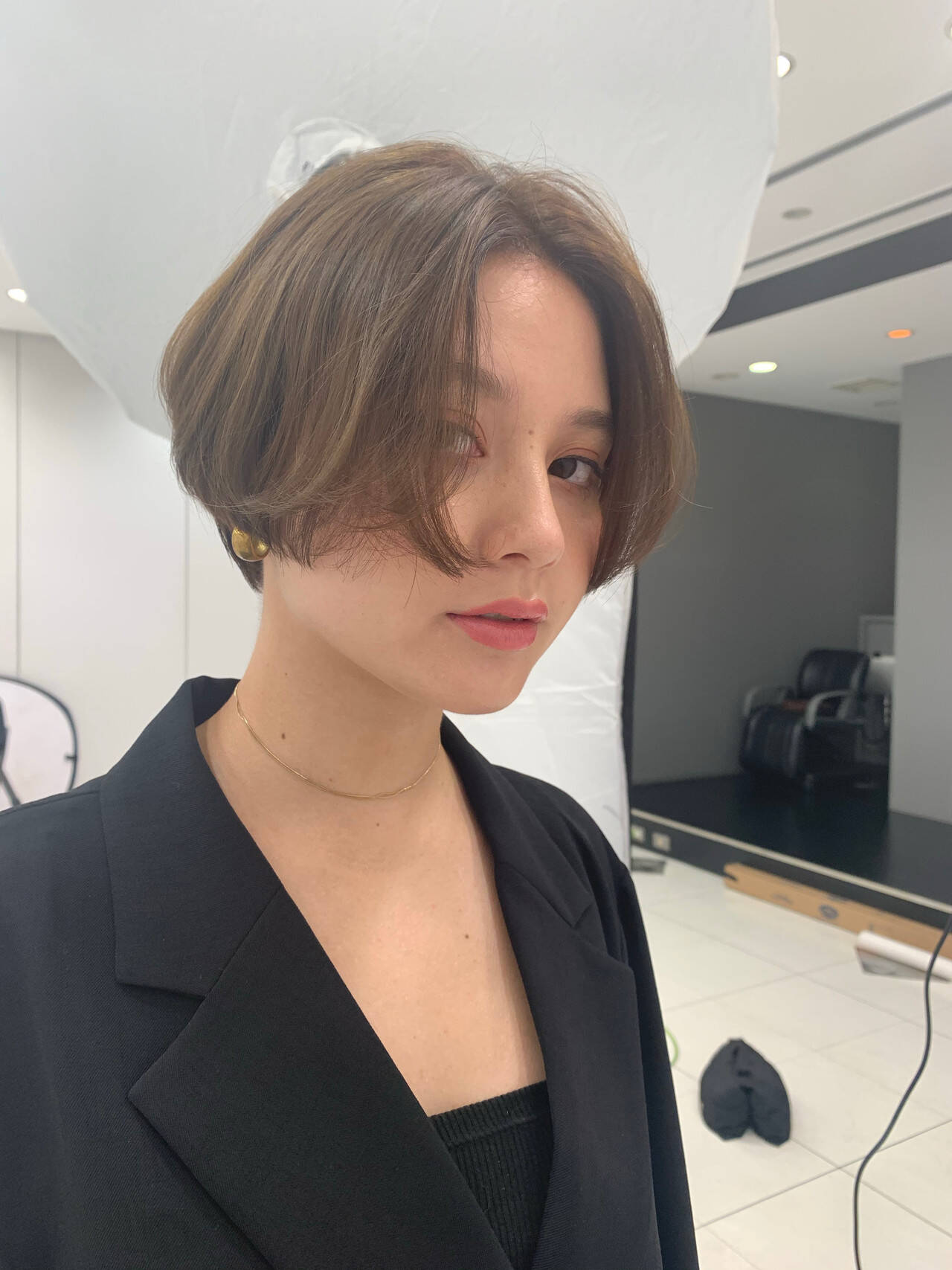 クールな大人女子のかっこよさをさりげなくアピールしたいなら、チークラインで揃えたショートヘアがおすすめ。大きめピアスとも相性抜群ですよ。