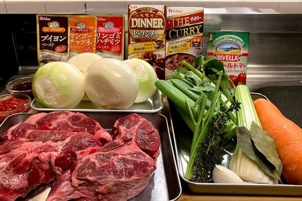 この流れでなんの料理を作るか少し悩んだ。何だかちゃんとしたフレンチを作るべきなのか、否か、と迷ったわけだ。そしてふと、過去に調べたことを思い出す。それは「欧風カレー」。私もしばらくは「ヨーロッパ風カレー」のことだと思っていたのだがインドカレーに相対する「ヨーロッパのそれ」ではなかったのである。なんなのか「欧風カレー」。実はビックリ、日本発祥のカレーなのである。大きな「へーっ」があちこちから聞こえる。