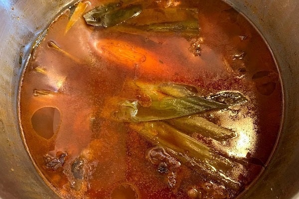 6.隣の鍋が沸き始めたら注意が必要です。ボコボコ沸かし切ってしまってアクが沈んでしまったら元も子もありません。沸き立つ前に弱火にしましょう。