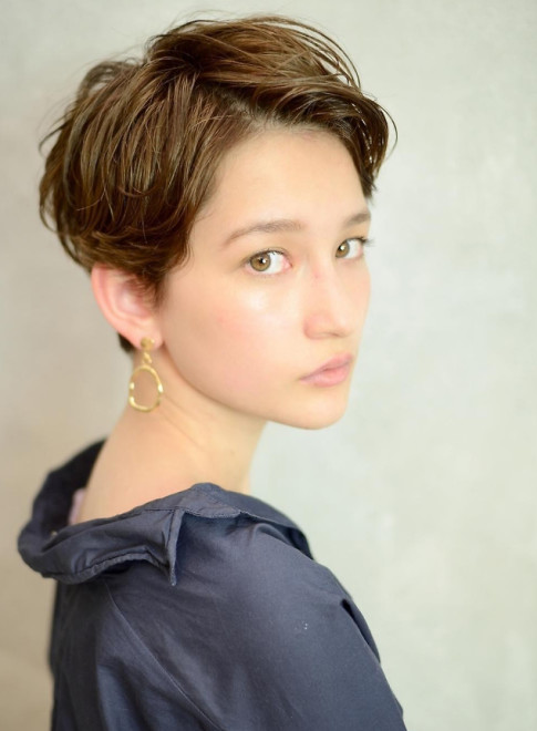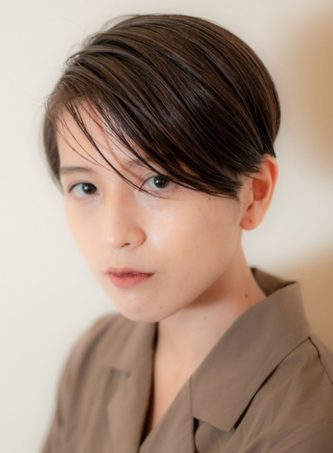 襟足をゆるく刈り上げ、すっきりとまとまりのあるシルエットに。前髪は長めに設定することでボーイッシュになりすぎず、程よく色気を感じる大人のスタイルに決まっています。