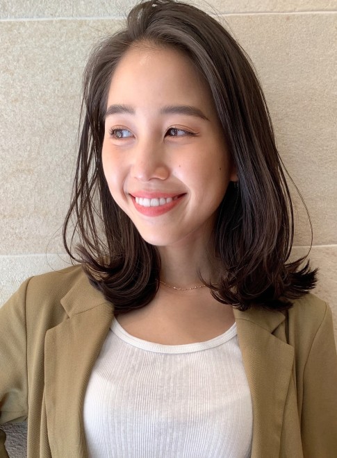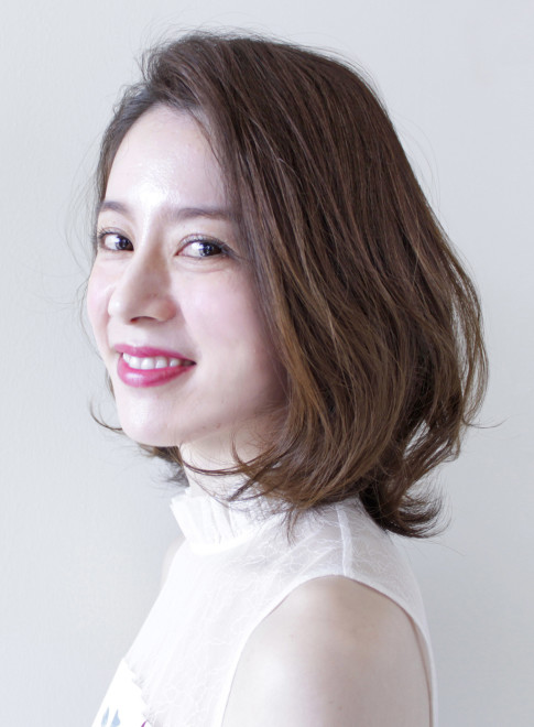 奥行きある前髪や前下りのラインが、面長さんでも似合うヘアスタイルのポイント。後ろから前に乾かすと内巻きにまとまりやすくなります。全体的にワックスを馴染ませたら完成です!