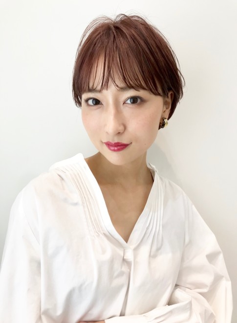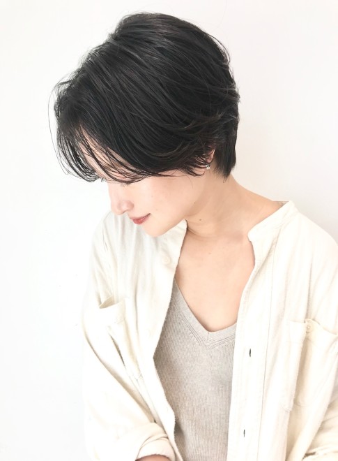 乾かすだけでキマる、お手入れ簡単おすすめショートです。広がりやすい方やまとまりが悪い方は、部分的にストレートパーマをかけるとより扱いやすくなります。ちょっと長めの前髪がヘルシーな色気漂う雰囲気に。