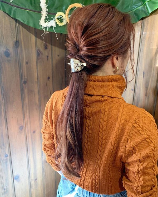 結び目に大き目のバレッタなどをつけると、ヘアスタイルによりきちんと感がでます。