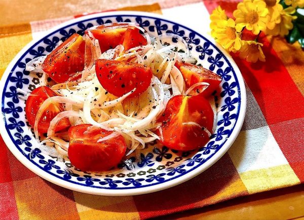 すし酢で簡単!新玉とトマトのマリネサラダ