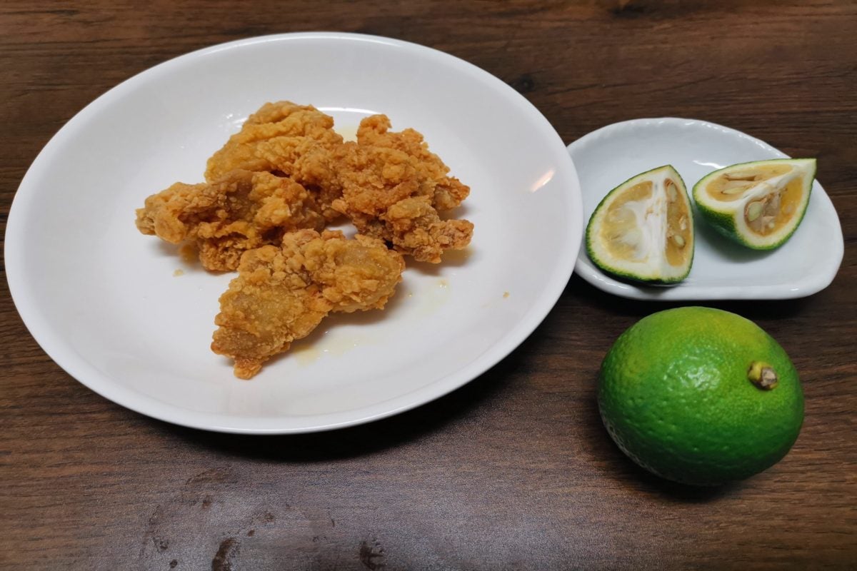 かぼすはレモンと違いかなり青い香りが強いため、からあげのオイリーさを香りの時点でより軽減してくれることが発覚。