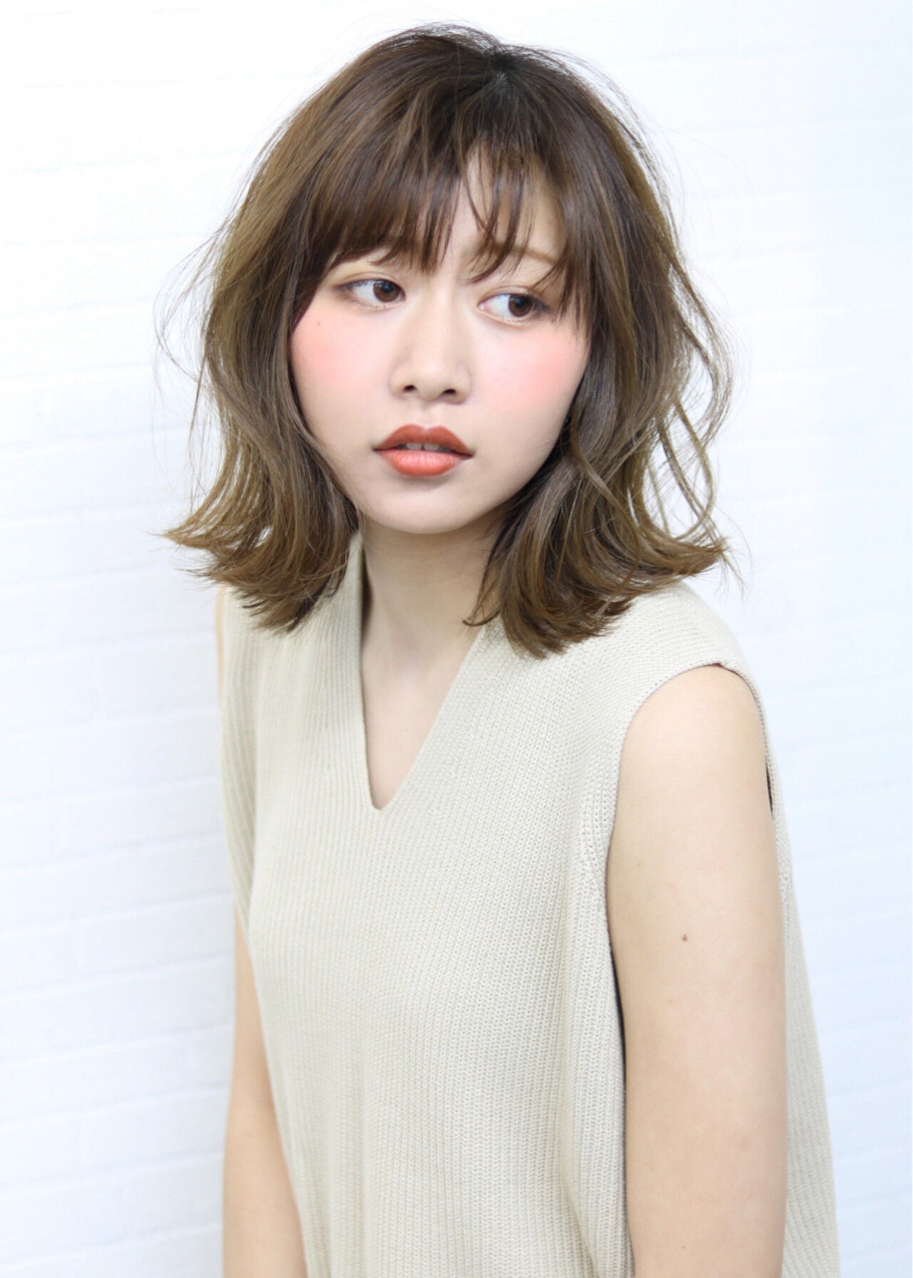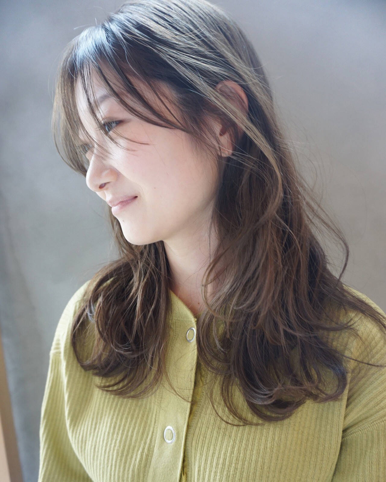 春に取り入れたい人気急上昇中のウルフヘアは、エアリー感と毛先の束感がポイントになります。さらに前髪の真ん中は薄目に、顔周りは厚めにすることで、違和感なく小顔に見せる効果がありますよ◎。