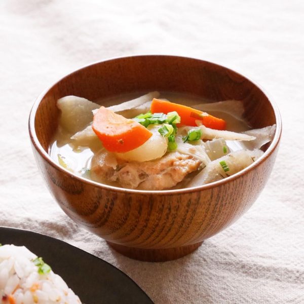 鮭のあらと味噌の旨味、そして根菜類の風味がからみあって、どこか懐かしい雰囲気の汁物に仕上がります。