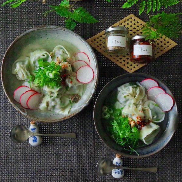 バジル、クレソン、大葉と栄養満点の野菜を包んだ水餃子は、青ねぎの刻みをたっぷりとかけていただきましょう。