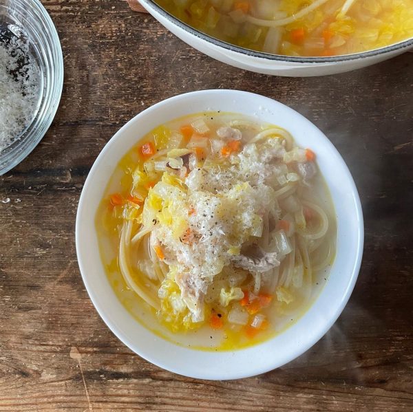 サラダチキンと野菜のスープスパゲッティ