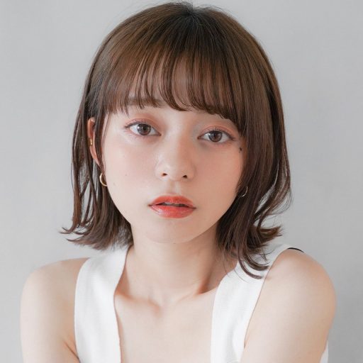 毛先を無造作にほんのり外ハネにスタイリングすることでまとまり感を崩すことで、抜け感がありつつもちょっと重たさも感じるスタイルに。前髪の透け感を出しすぎず、程良い重たさを残すことでバランスを取ることが似合わせのポイントです。