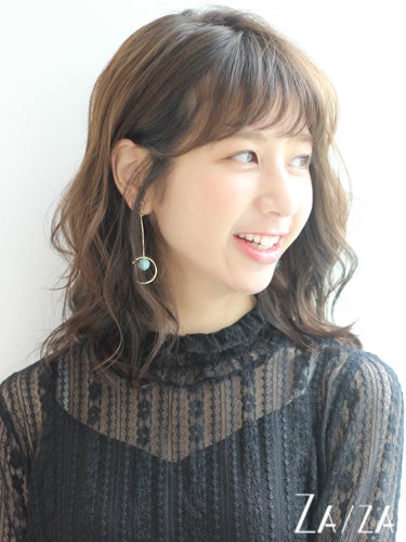 パーマをかけてやわらかな動きをつけたミディアムとも相性がよく、小顔効果が期待できるカットも嬉しいところですね。