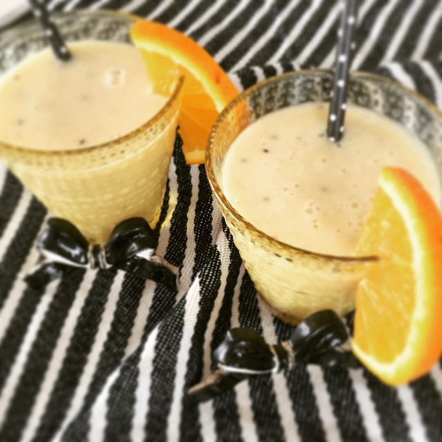 初心者さんはブレンダーを使用してお手軽に作ると良いですよ。グラスにオレンジをトッピングして可愛くスムージーを仕上げてください。