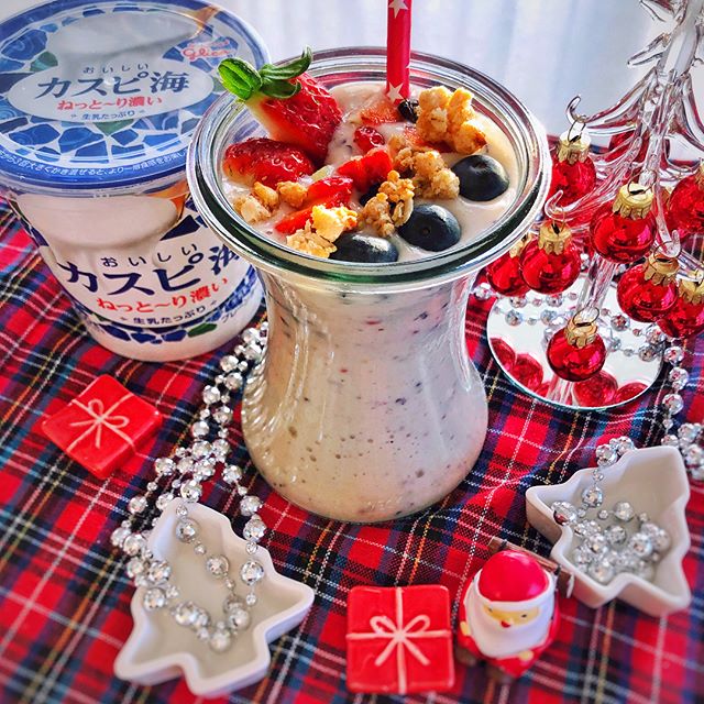 一緒にフルーツグラノーラやイチジクなどトッピングしておしゃれにするのがおすすめ。インスタ映えするようなスムージーでモチベーションアップです♪