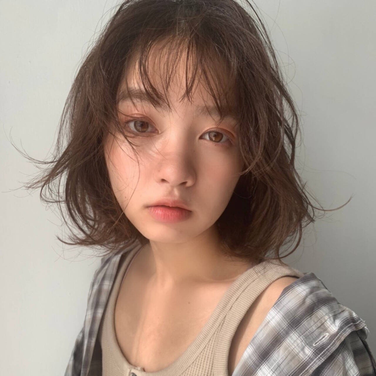 毛先にいくつも細かいカールをつくってボリュームを出したボブ。前髪はシースルーバングにするとバランスの良い仕上がりになります。