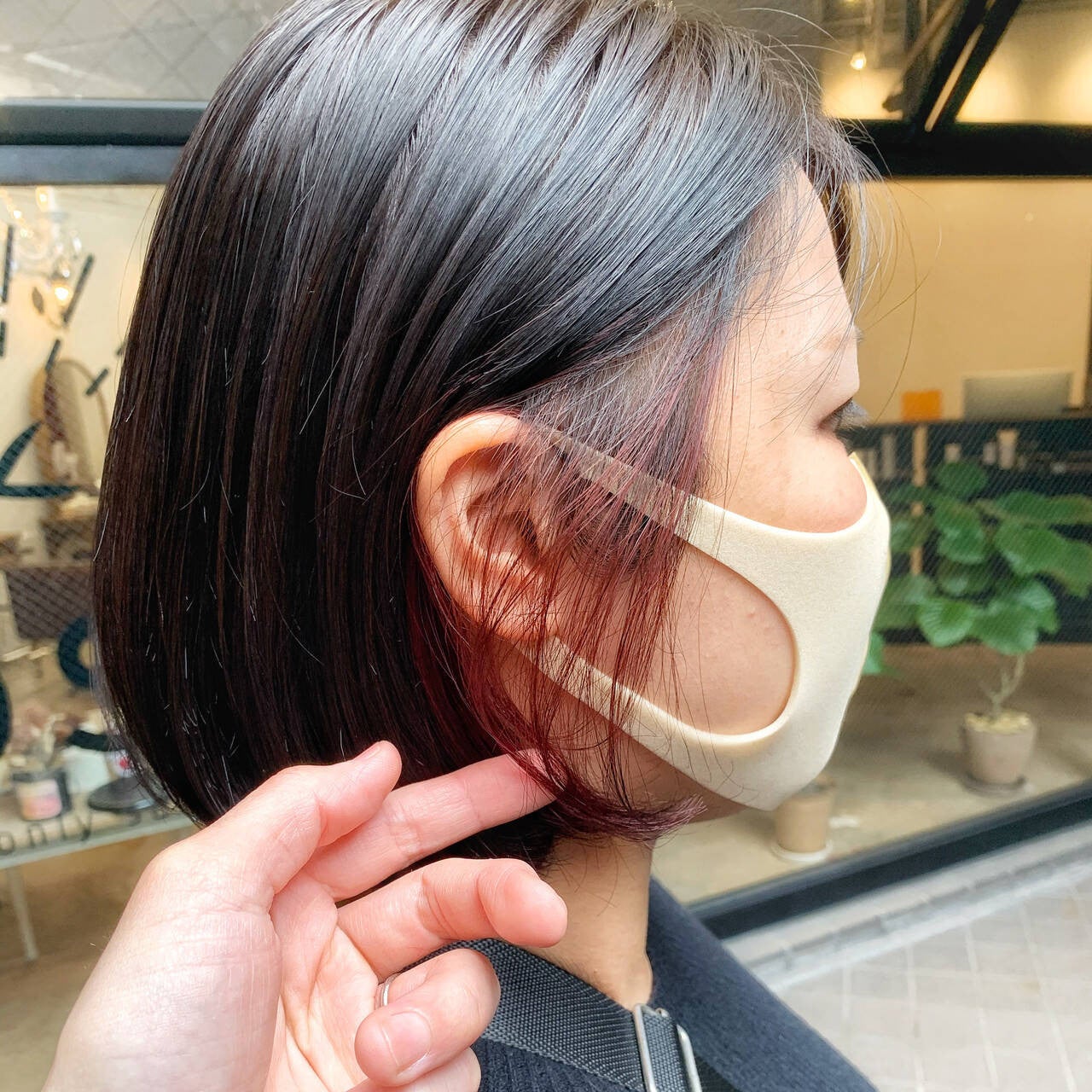 シンプルなボブにインナーカラーを入れるとより可愛くなります。チラ見せがしやすい耳横に入れるのがおすすめです。地色よりもハイトーンで入れておしゃれ感をマシマシしましょう♡