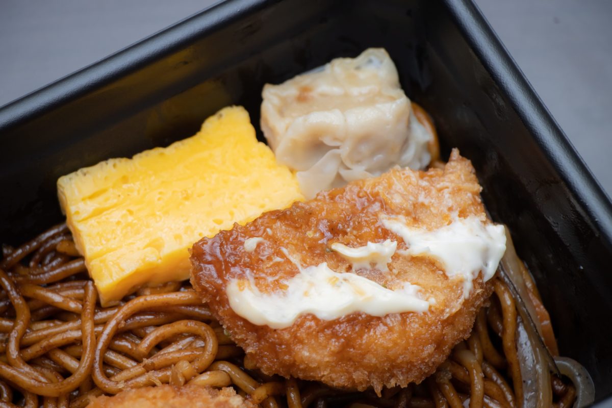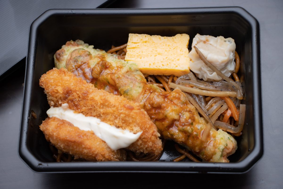 このセットのすごいところは、そのほかにもじゃがいもコロッケ、玉子、シュウマイ、そして焼そばが入っているため、一般的なのり弁以上の種類のおかずを楽しむことができるのだ。