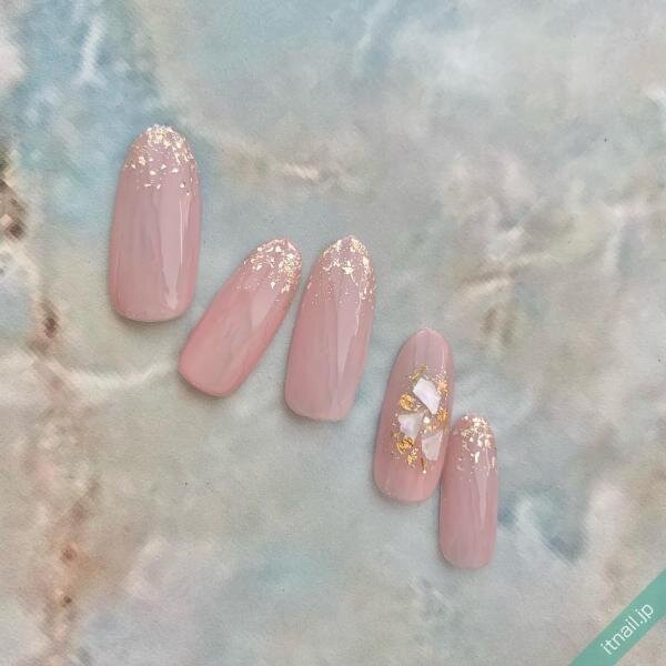 シンプルネイルに控えめで上品な輝きを添えるシェル。細かいホイルアートや金箔と組み合わせれば、華奢なデコレーションを叶えてくれます。女性らしさがふんわり漂う繊細な雰囲気。