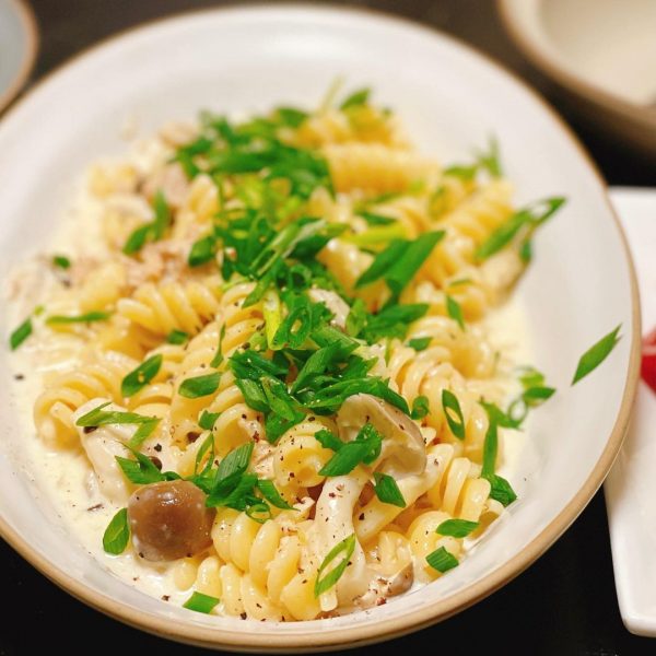 洋風のレシピなのに青ネギを大量消費する人気のパスタです。生クリームを使用した濃厚なソースと青ネギとのバランスがうまくマッチした一品。