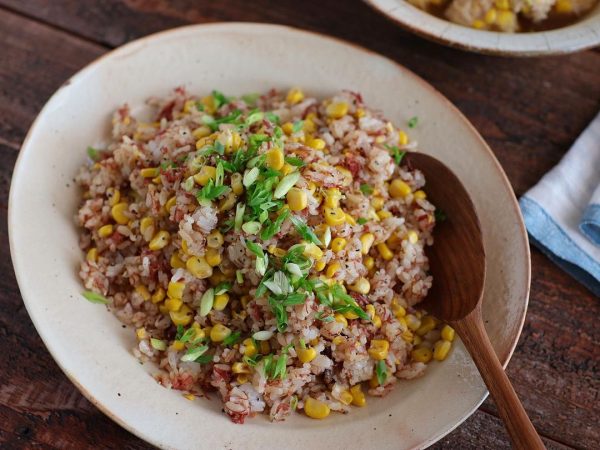 とうもろこしとコンビーフを合わせた美味しい炒飯です。青ネギを3本大量消費できるのでおすすめですよ。
