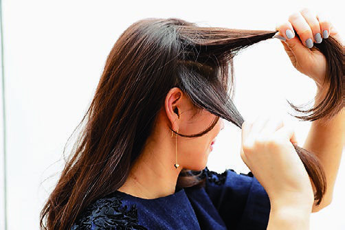 少し長めのショートボブの場合も、コテで巻いて動きを出してオイルなどでツヤを出します。センター分けも素敵ですが、9:1くらいに分けて片方を耳にかけるときりりとした清潔感が際立ち、オシャレさもアップ。ピアスやイヤリングが目立つのも華やかに見える理由です。