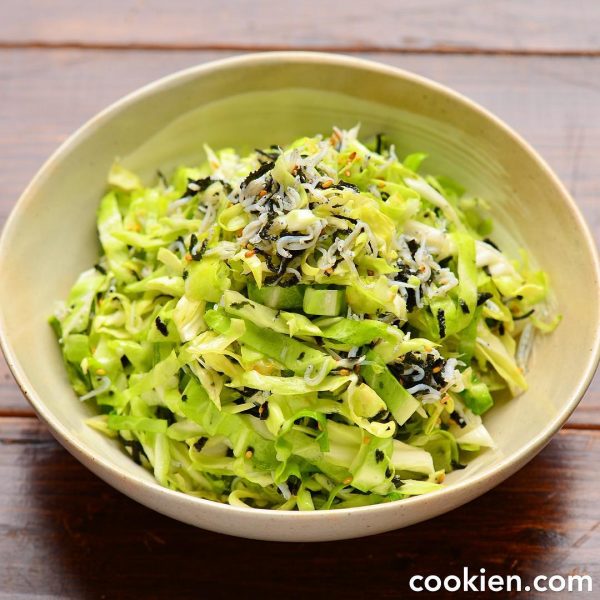 キャベツの千切りにしらすと海苔を加えた和風サラダは、さっぱりとしていますが食べ応えがあるのでヘルシーなおかずとしてもおすすめ。