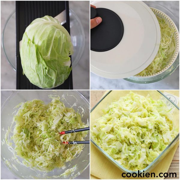 調味料がちゃんと絡むように、キャベツは洗ったらしっかり水気を拭くかサラダスピナーで水気を切るようにしましょう。